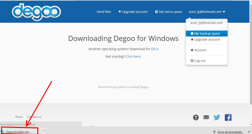 ต่อมาจะให้ดาวน์โหลดซอฟต์แวร์และติดตั้งลงคอม ก็ติตตั้ง degoo ได้เลย